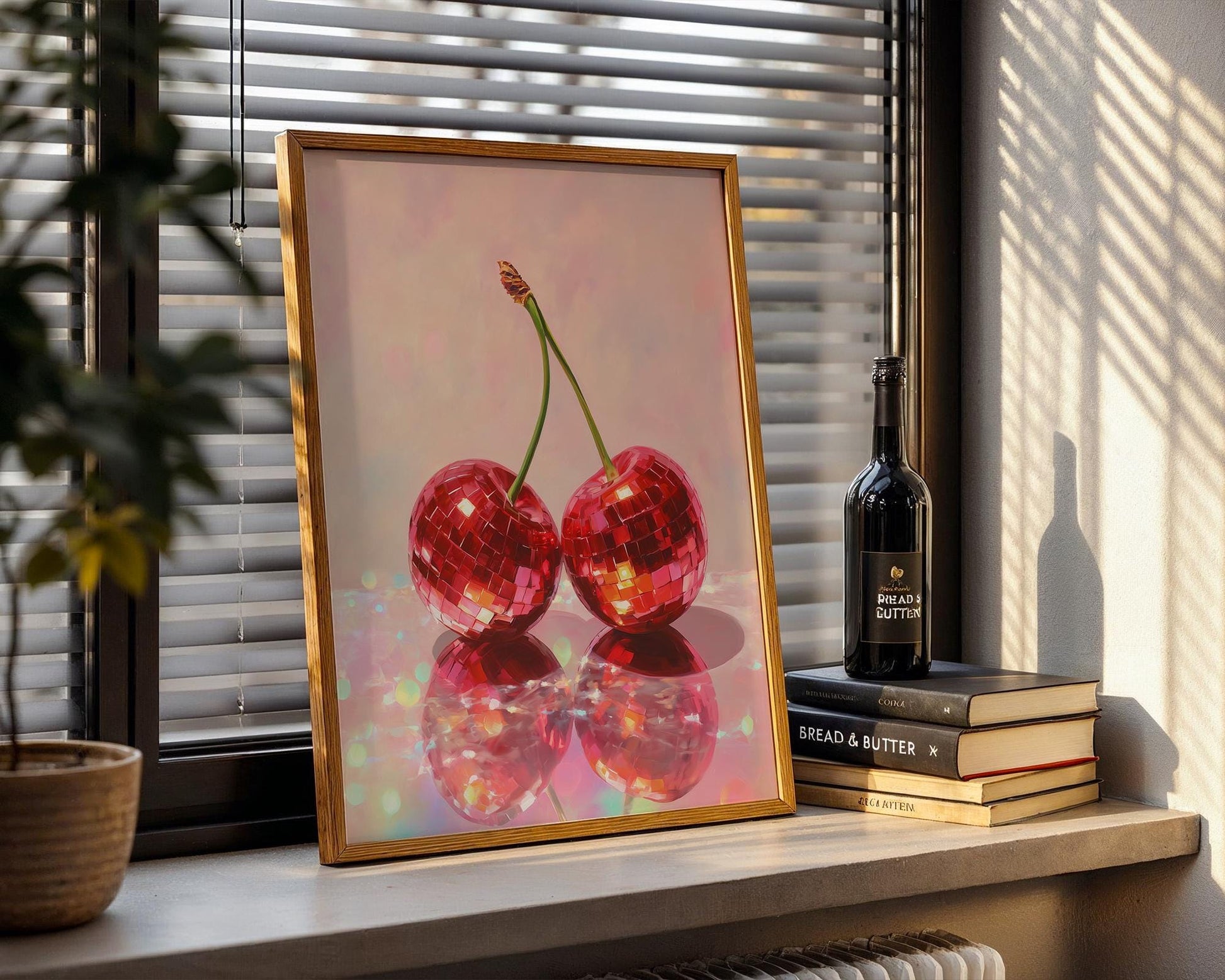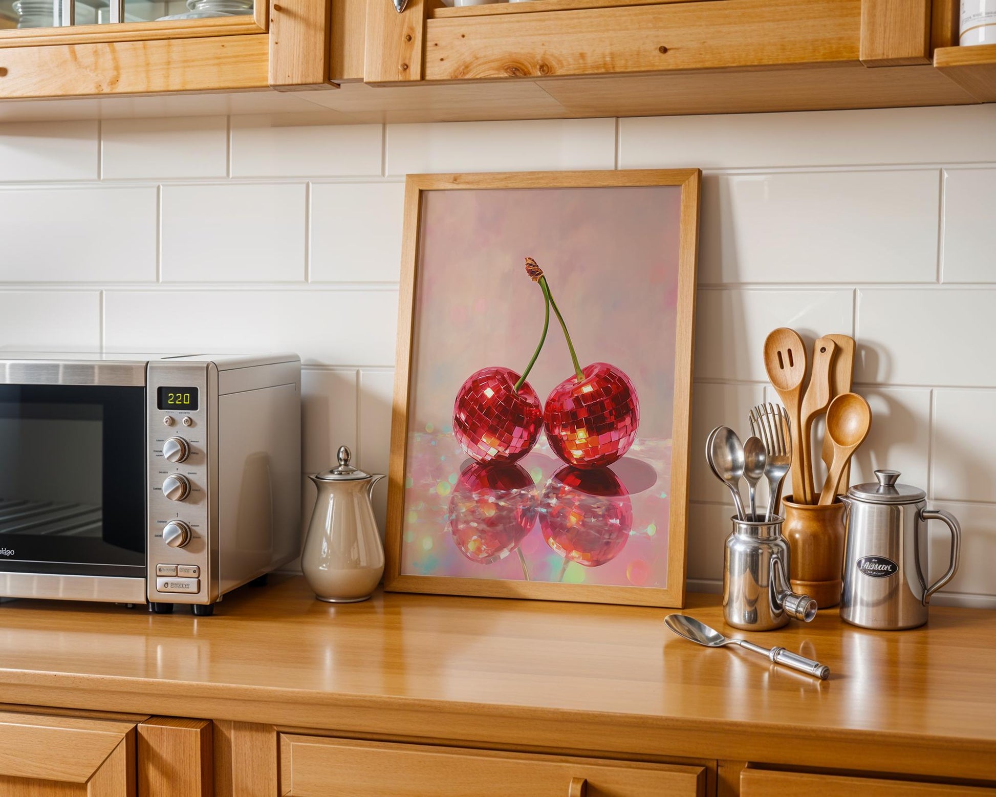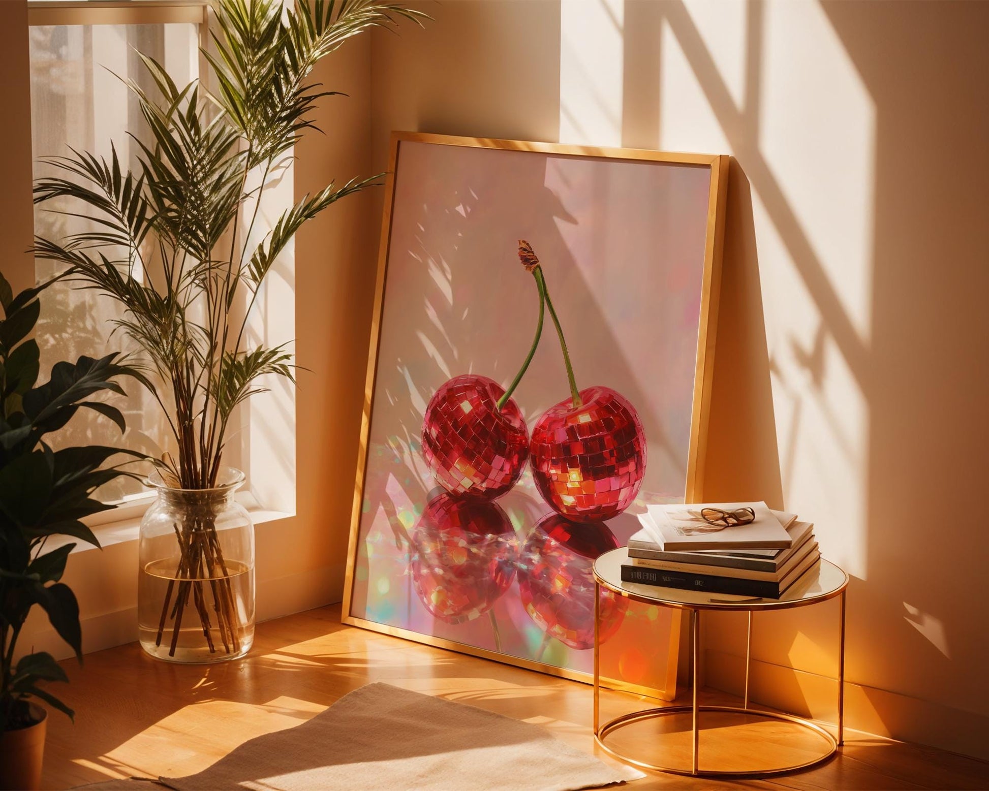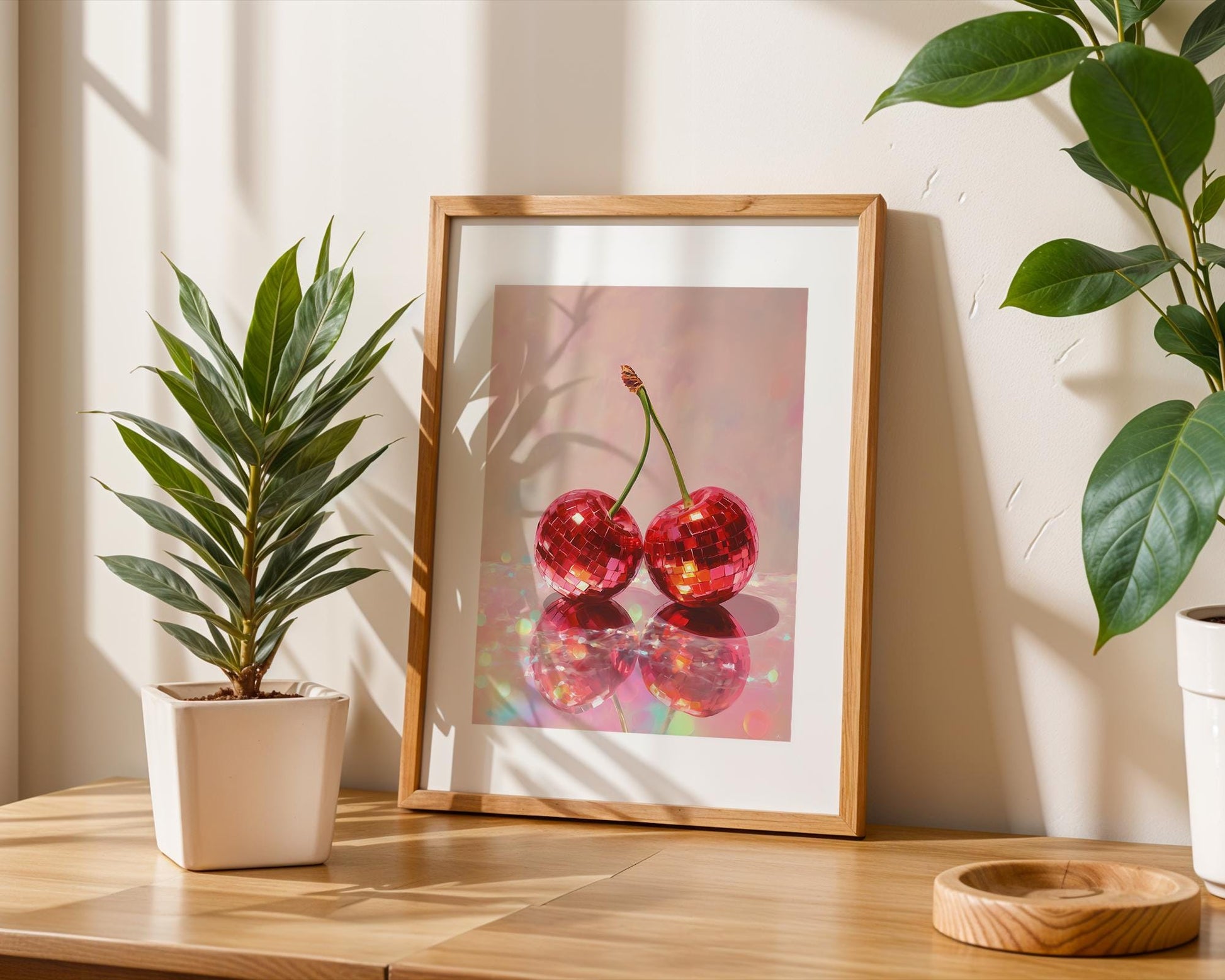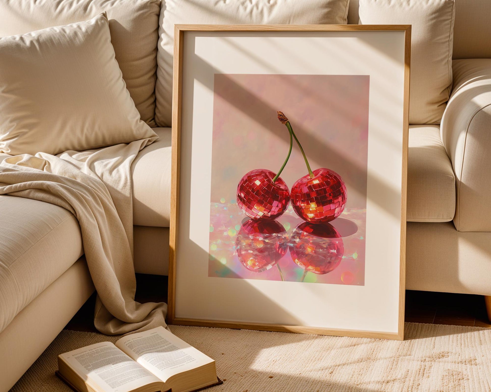 Make your walls dance with sparkle and charm - order your cherry disco art print today! 🛒