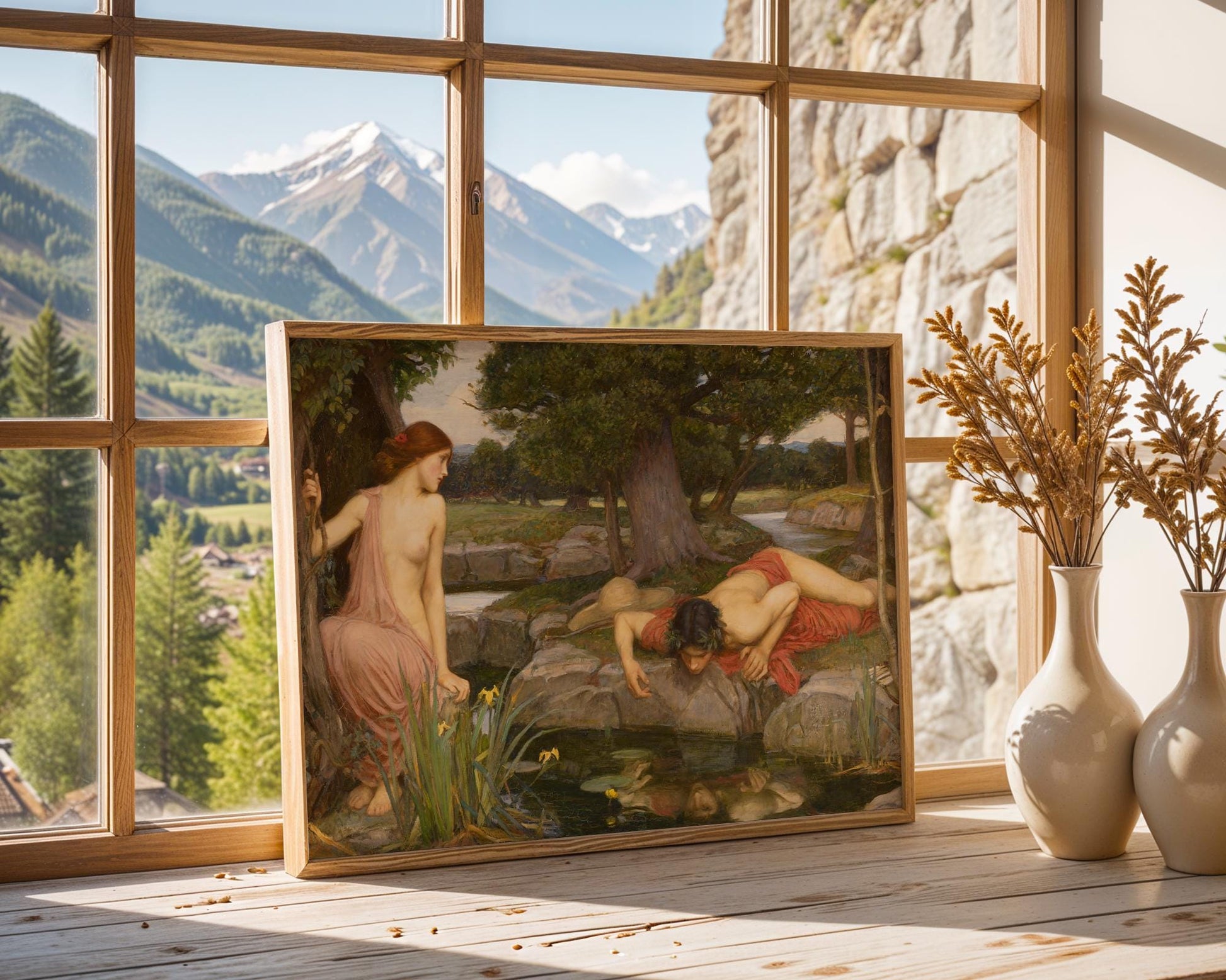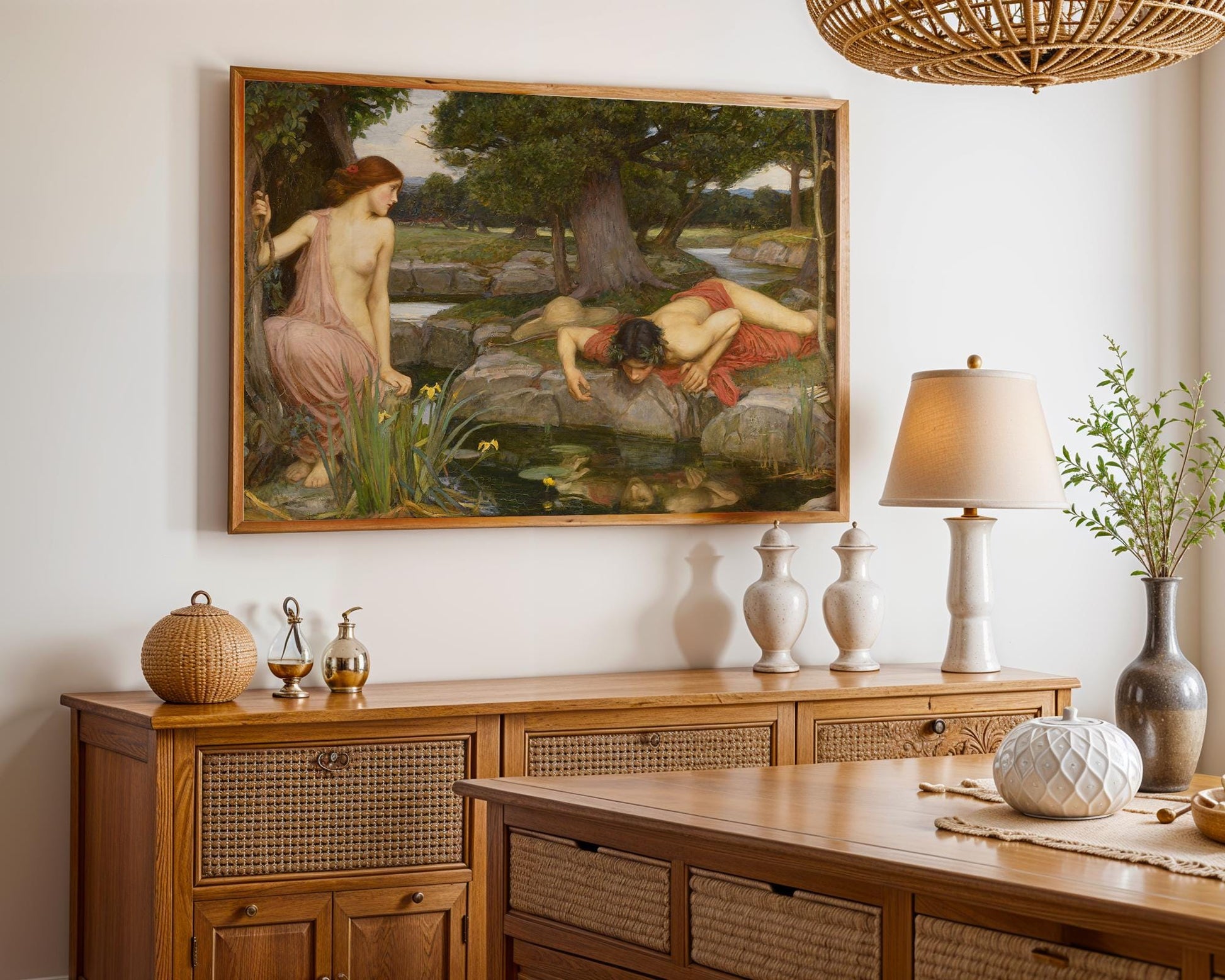 Echo and Narcissus - John William Waterhouse - Art Print - Pre-Raphaelite Painting - Victorian Romance Art - Wall Decor - Famous Artwork