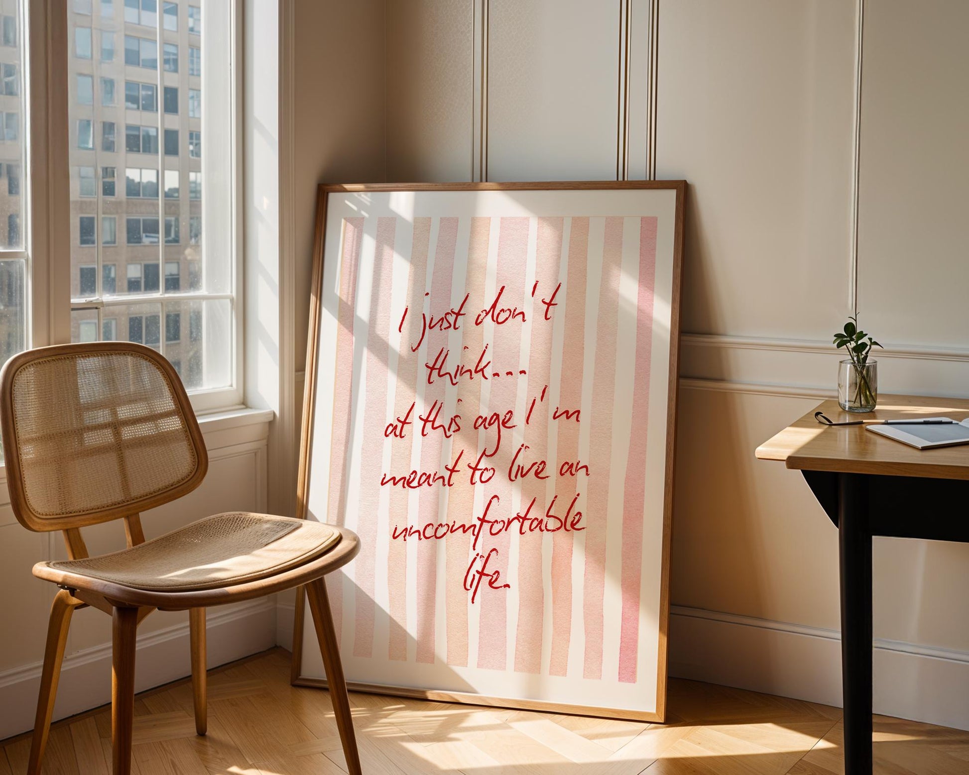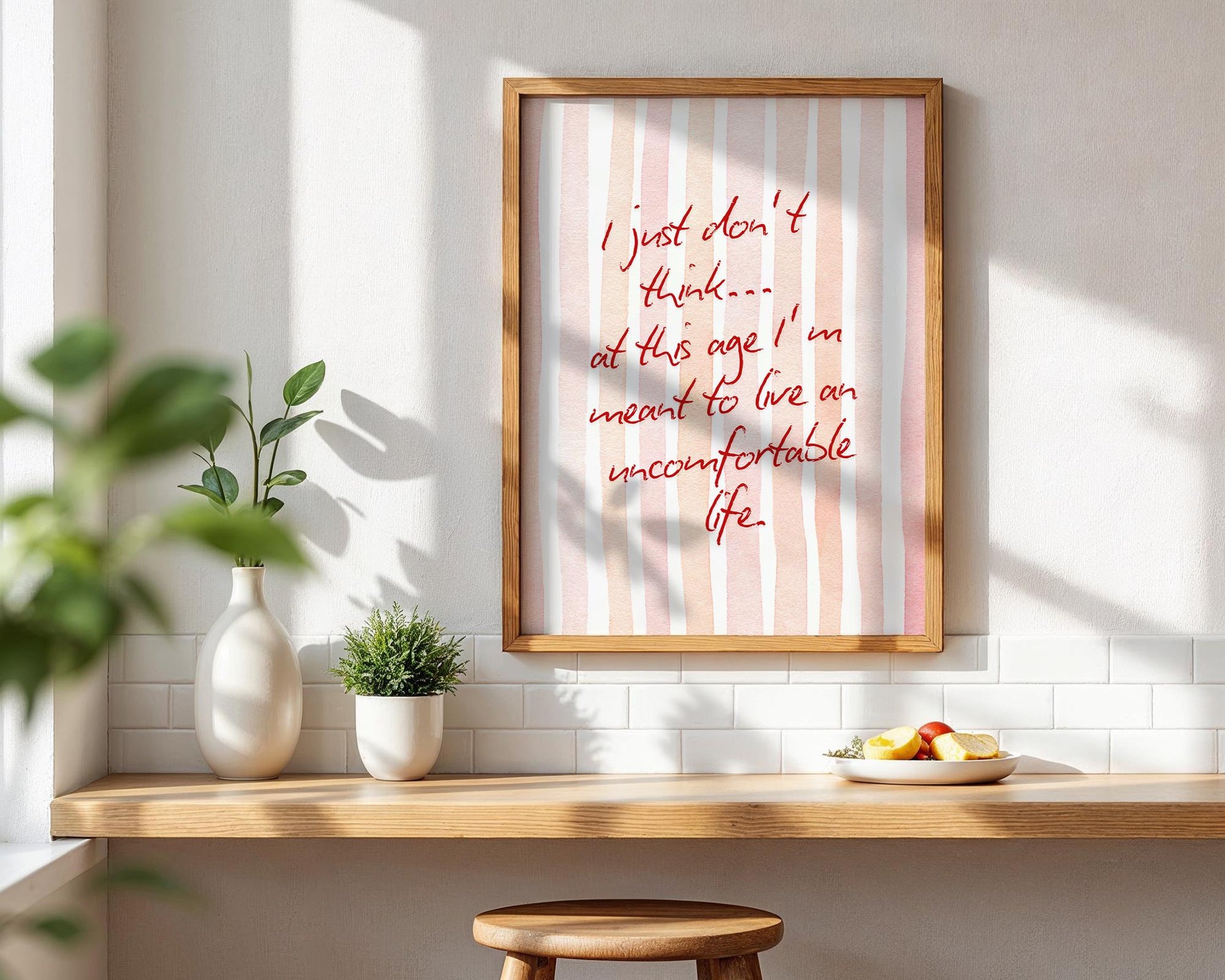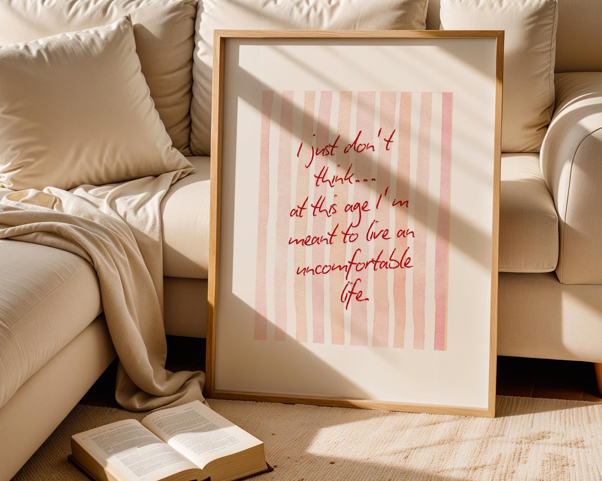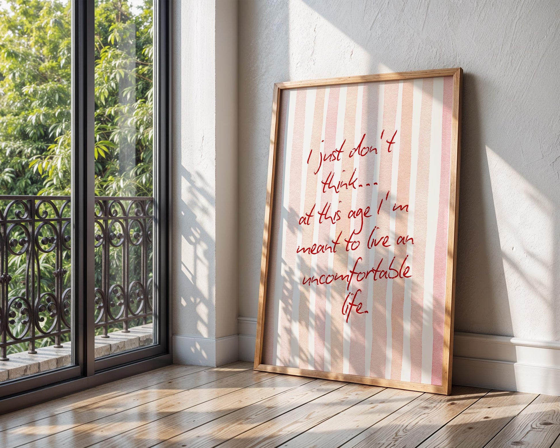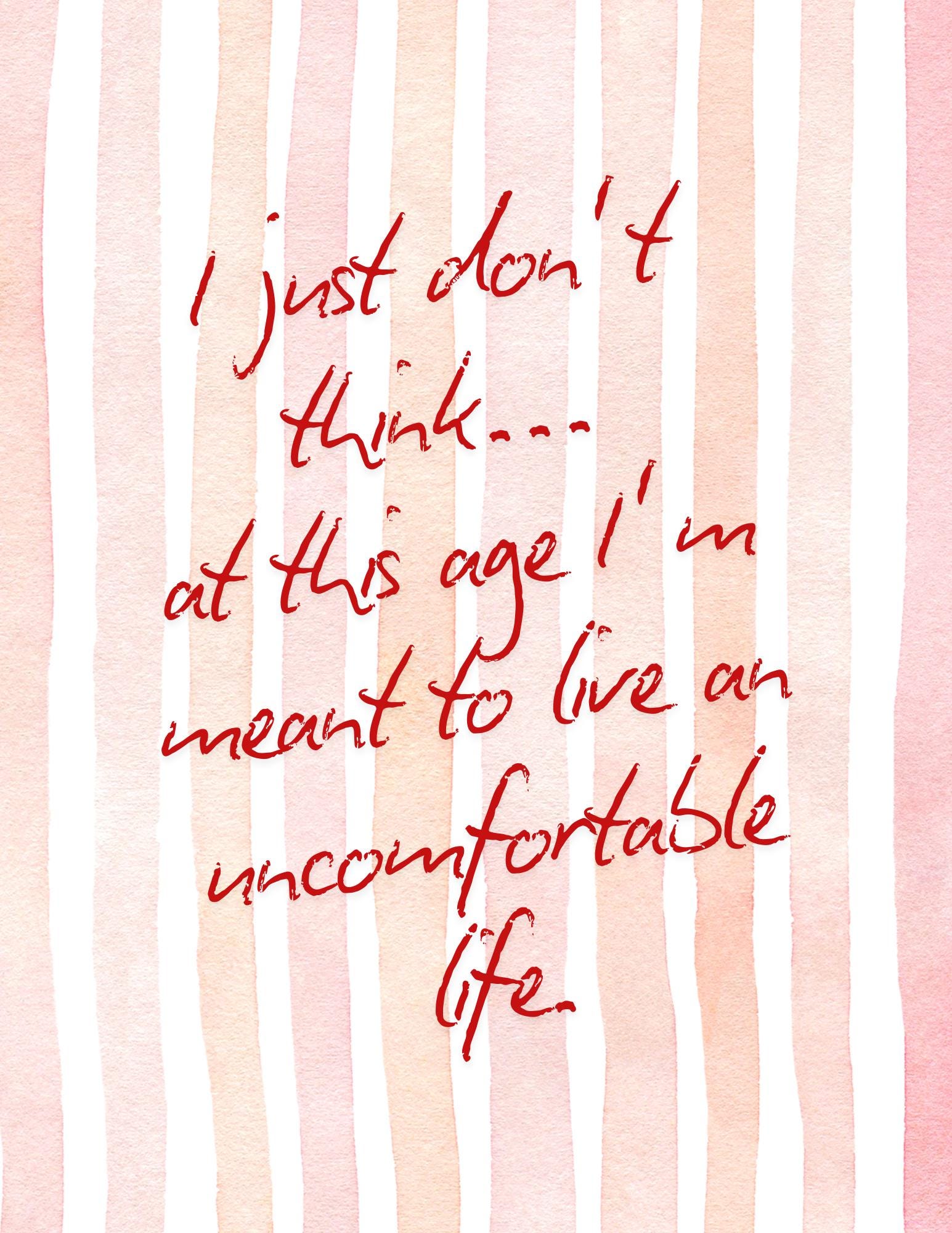 "I just don't think... at this age I'm meant to live an uncomfortable life."