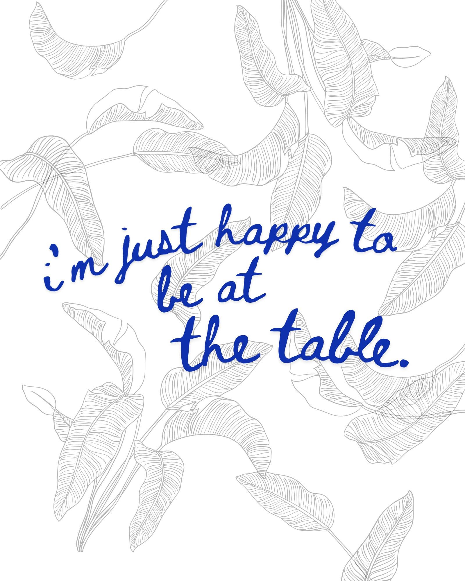 White Lotus Quote Wall Art - 'Happy to Be at the Table' Print - Carrie Coon Laurie Duffy Inspirational TV Quote - Minimalist Home Decor